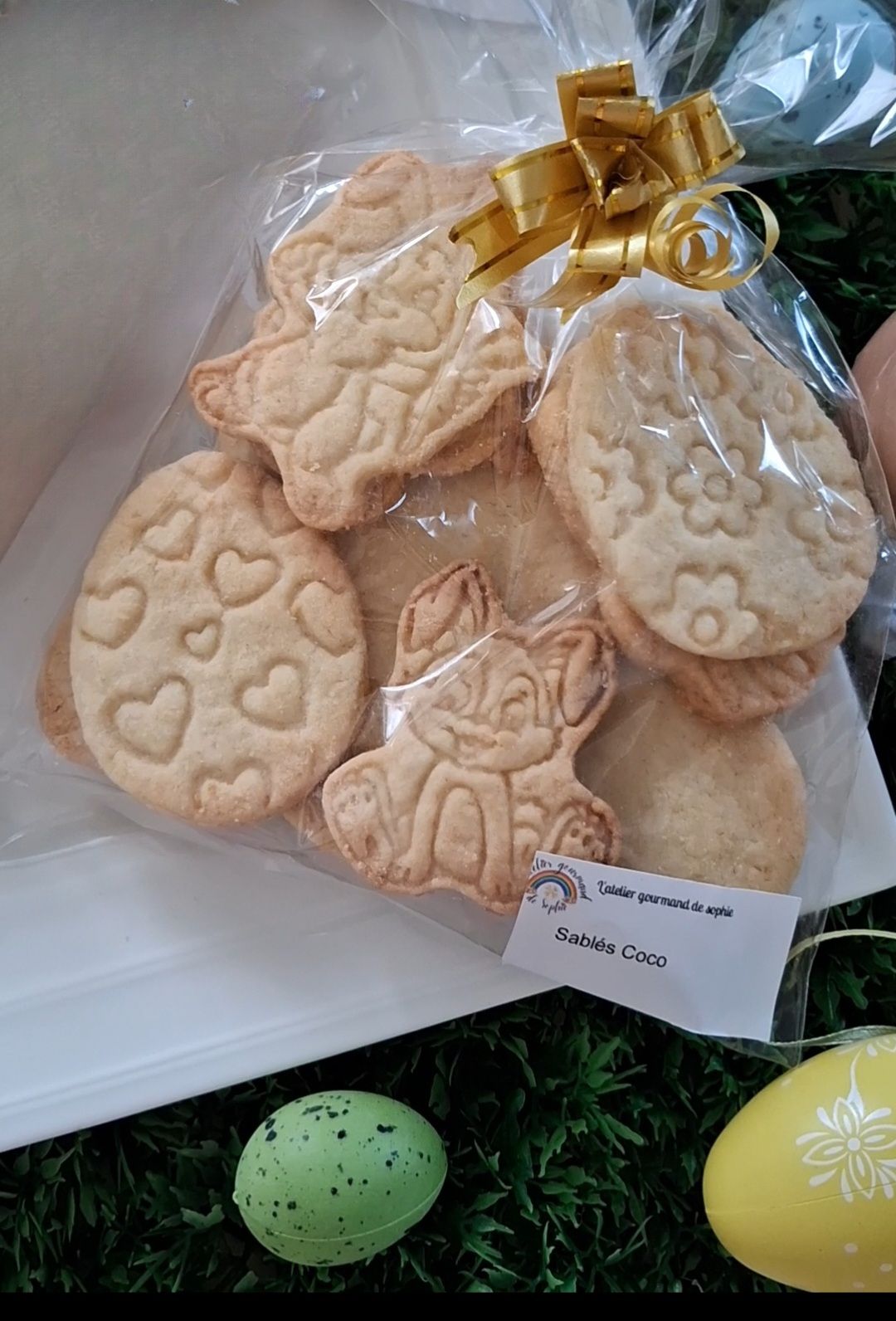 Ingrédients: FARINE DE BLE, sucre, OEUFS, beurre, COCO EN POUDRE: ( traces d'arachides, gluten, autres fruits à coque, lait, oeufs, graines de sésame, soja, et sulfites).
